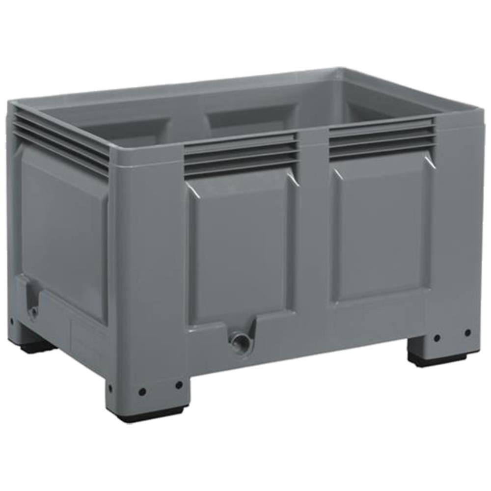 Schoeller Allibert Bigbox i europallemål med fire fødder. Boxen har glatte dobbeltvægget profiler som gør boxen nem at stable. Bigboxen har en volumen på 535 liter og kan belastes med maks. 500 kg. Ved stabling kan den belastes dynamisk med 4.500 kg. Den tåler temperaturer fra ÷35° til +80°C.