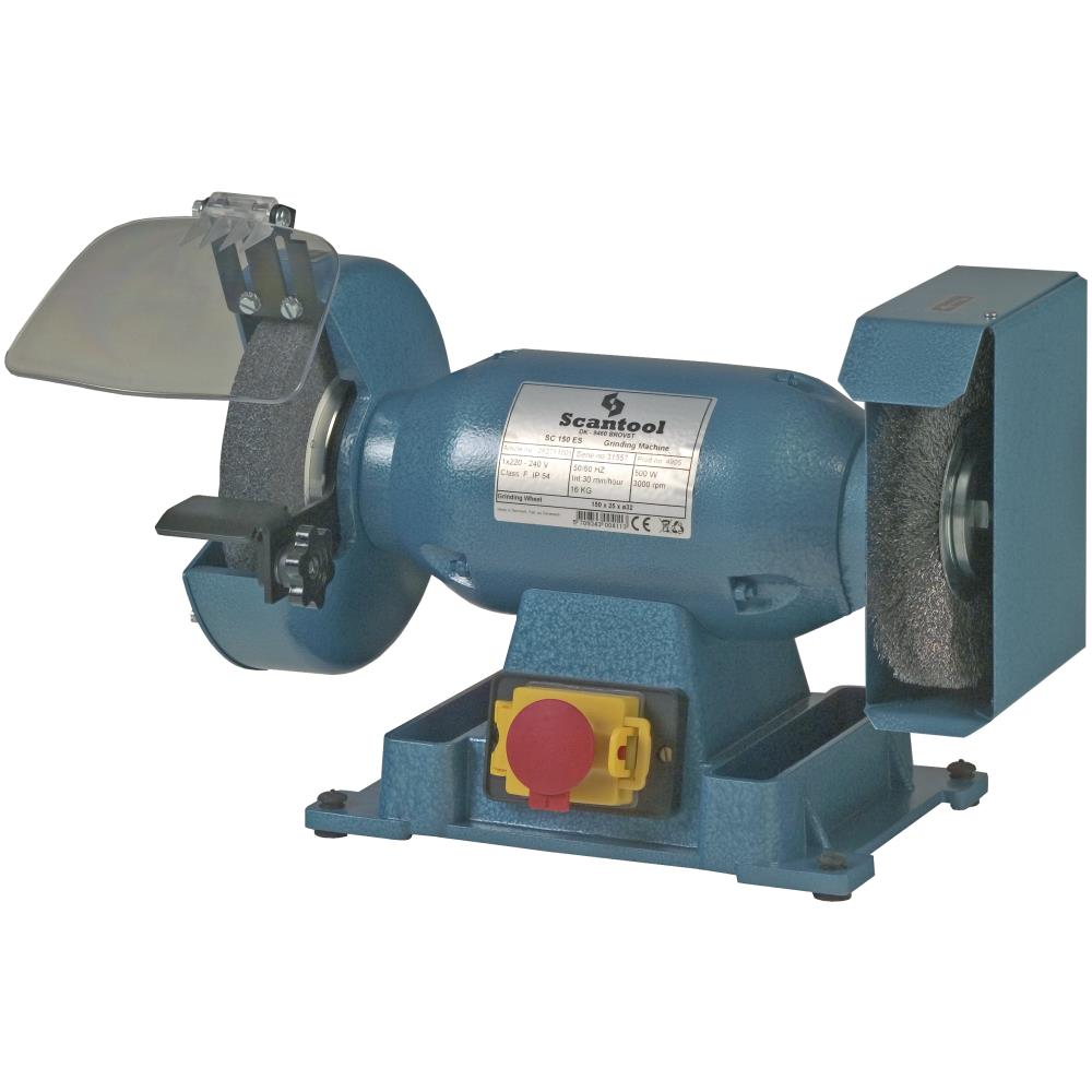 Bænksliber og poleringsmaskine (dobbeltsliber) SCxxxES, bænkmodel med EK hvid, fin slibeskive og stålbørste. Slibemaskinen har en kraftig motor med rolig gang. Store justerbare øjenværn, justbare slibeanlæg, justerbare gnistfang, skærme med udsugningsstudser samt afbryder med separate nødstop. 1×230 V – 50 Hz. 500 W (SC150 ES) / 650 W (SC200ES) motor med 3.000 omdr./min. Skivestørrelse hhv. ø150×25×32 mm (SC150ES) og ø200×25×32 mm (SC200ES).