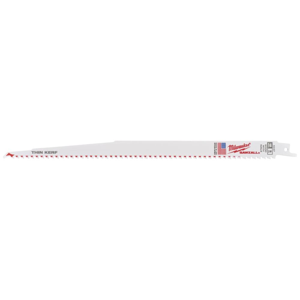 Tynd Sawzall ThinKerf bajonetsavklinge til nedrivning i træ med søm. Design med Fang Tip for hurtigere dyksavning og tilgang til steder med begrænset plads, samt Nail Guard som beskytter klingens tænder ved kontakt med søm for øget holdbarhed og levetid. Stærk 1,27 mm klingekrop med aggressiv 5 tpi tandgeometri, som fjerner mere materiale pr. slag for hurtigere savning. Perfekt til dyksavning og til savning på steder med begrænset plads. Bimetalkonstruktion gør klingen fleksibel, så den kan bøjes uden at gå i stykker.