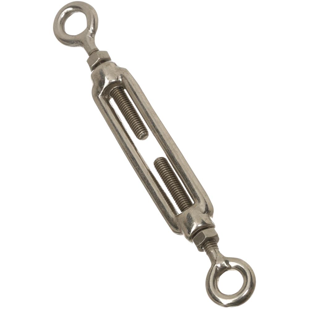 Syrefast, AISI 316 bardunstrammer med to øjer (øje/øje) til stramning af stålwirer. I henhold til DIN 1480. Fås i flere dimensioner.