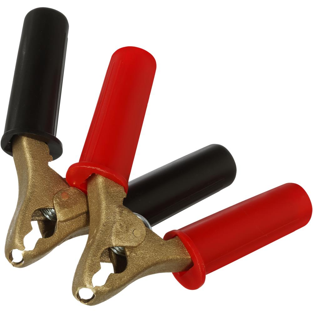 Kraftige batteriklemmer til startkabler. Til kabel 2×25, 2×35 eller 2×50 mm². Leveres med rødt eller sort håndtag for farvekodning af polaritet.