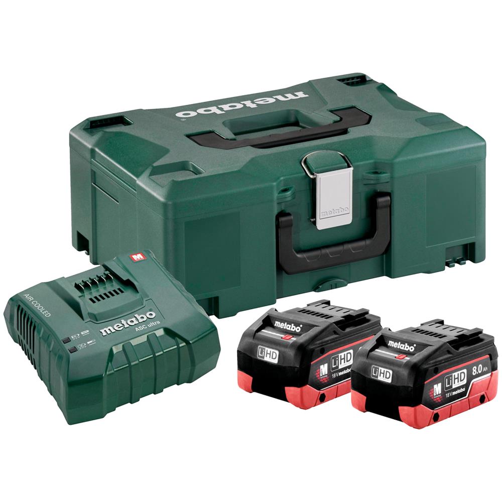 Batterisæt 2×18V/8,0Ah LiHD+lader ASC145+Metaloc
