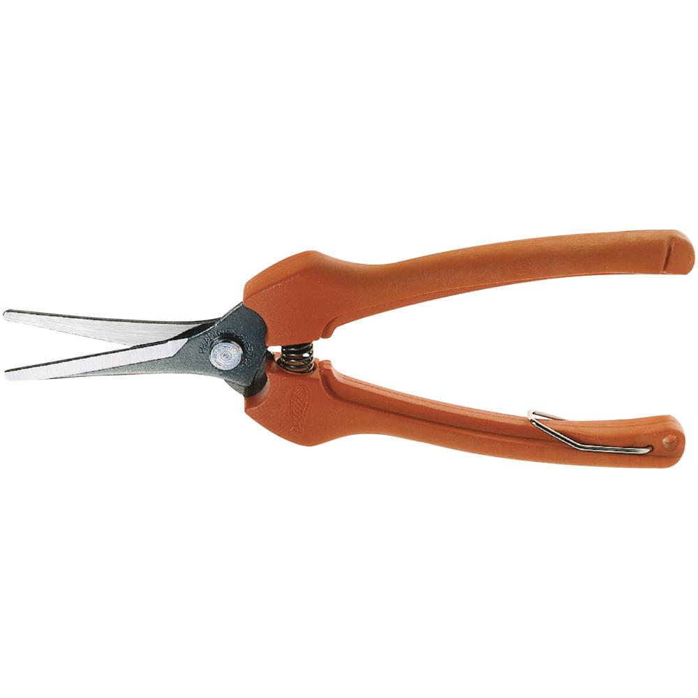 Letvægts-blomstersaks til afklipning af frugt og blomster etc. Lange og slanke skær som kan åbnes med 35 mm. Glasfiberforstærkede håndtag, én-håndsbetjent bøjlelås og kontrafjeder. Inkl. plasthylster.