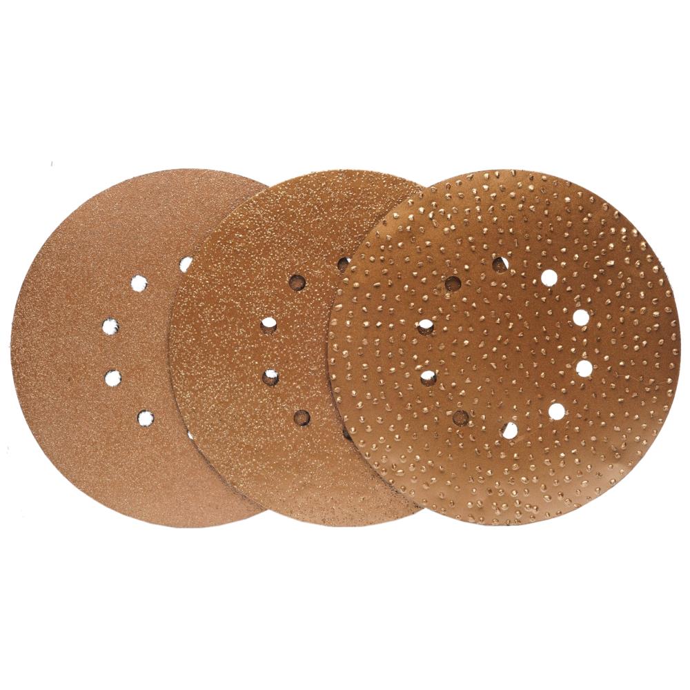 Carbide rondel (ø225 mm) med 9 huller til vægslibning. Med velcro til bl.a. girafsliber. Fås i flere varianter.