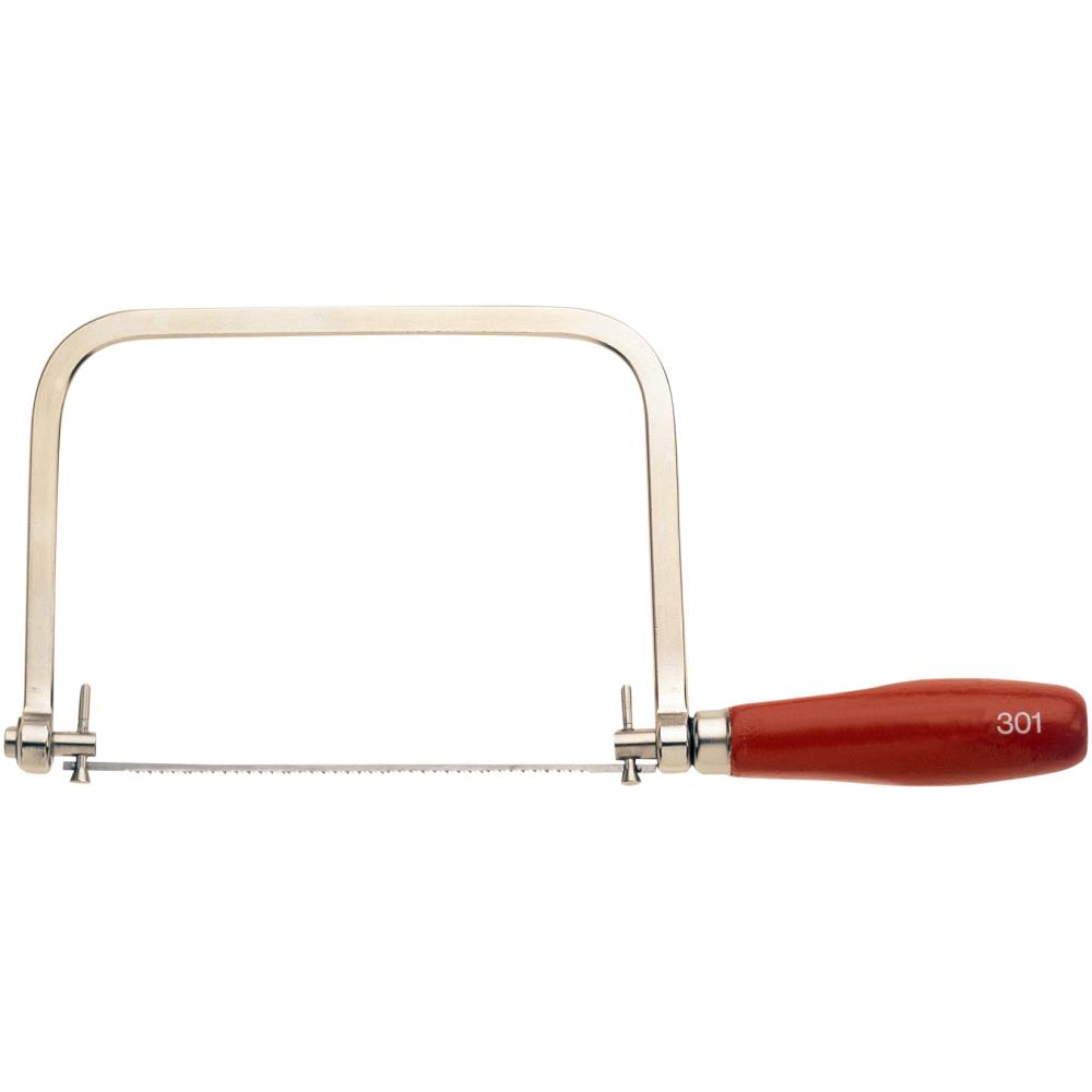 Til figur- og kontursavning i bløde metaller, træ og plast. Buehøjde 128 mm. Trinløs indstillelig klinge, kan drejes 360°. Klingespændingen kan indstilles i håndtaget. Kraftig stålbue og holdestifter for nem og hurtig klingeskift. Orangelakeret håndtag af bøgetræ. Leveres med udskiftelig klinge type 303, 14 tænder pr. tomme.