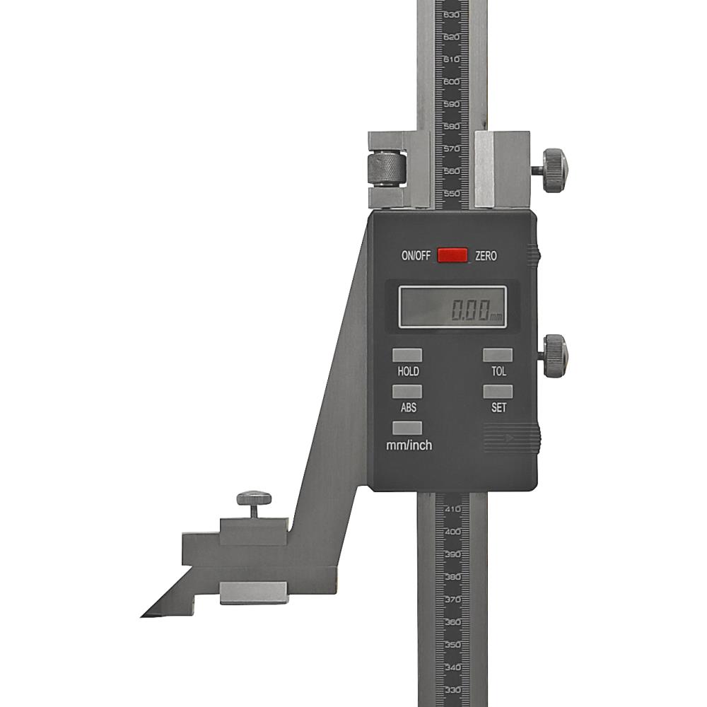Finindstillelig digital-højdemåler med hårdmetal-ridsearm. Højdemåleren har omskifterfunktion fra millimeter til tommer og mulighed for ± justering af millimeter. Kan bruges sammen med vippeindikatorer. 0,01 mm aflæsning. Fås i flere varianter.
