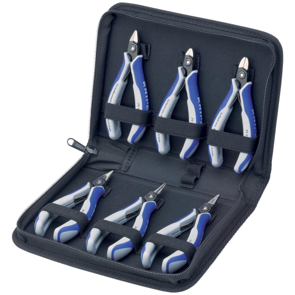 Etui af slidstærkt polyesterstof, tangholder af elastisk gummibånd, lynlås. Med 6 dele, bestykket med 6 præcisions-elektroniktænger.