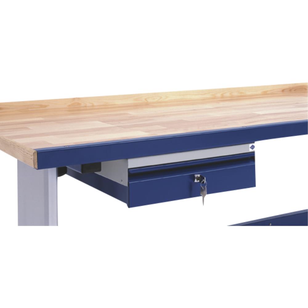 Enkelt skuffesektion til værkstedsbord. Med stålkugleudtræk og centrallås. Fås i flere varianter.
