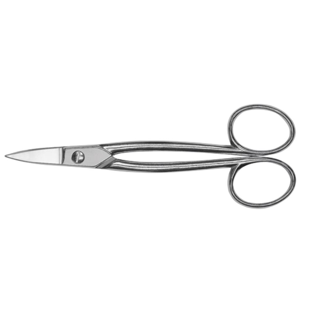 Forniklet guldsmedesaks med fingerhuller. Fås med lige- og buet skær. Fås i flere varianter.