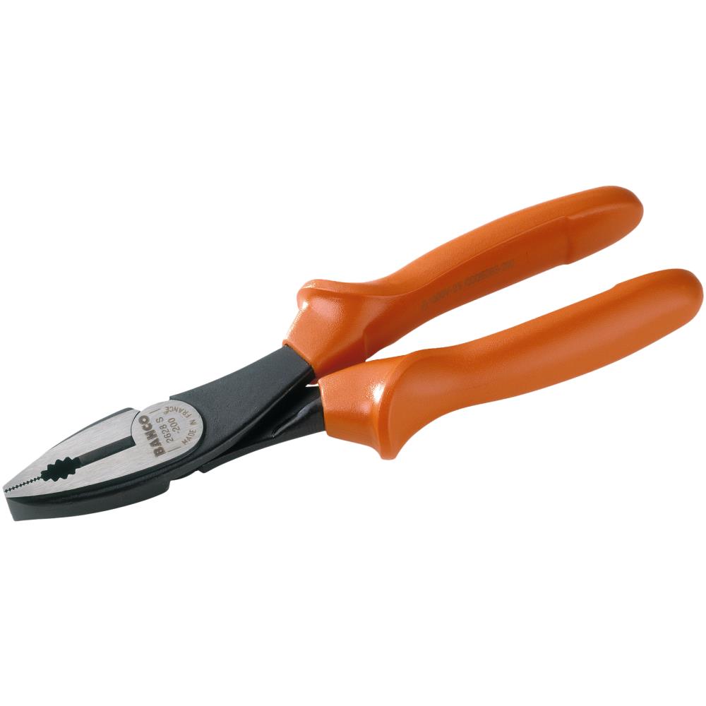 Isoleret kombinationstang (ISO 5746, IEC 60900) til arbejde med emner med op til 1.000 V. Nøjagtige og hærdede skær til klipning af hårde materialer som fx pianotråd og fjedertråd. Den holdende del er forsynet med riflede kæber til fastholdelse af runde og flade emner og de afrundede kæber gør tangen ideel til opgaver hvor pladsen er trang. Nitteplaceringen sikrer stor udveksling med minimalt kraftforbrug. Fremstillet af rustbeskyttet højtlegeret stål med sortoxideret finish og plasthåndtag med store stopvinger. Fås i flere dimensioner.