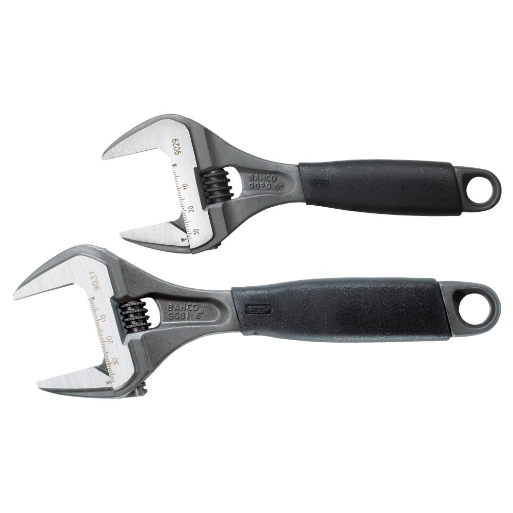 Ergo skiftenøglesæt dobbeltpakke med 9029 og 9031 skiftenøgler med ekstra stor kæbeåbning med et kortere håndtag end på standardnøgler giver bedre mulighed for arbejde, hvor pladsen er trang. Kæben falder ikke ud – selv ikke når skiftenøglen er maksimalt åben. Hovedet har et slankt design, så der er bedre adgang til trange områder. Laserskala i mm til forudindstilling og nøjagtig måling. Skydrol- og oliemodstandsdygtigt Ergo gummigreb. Højtlegeret stål smedet i ét stykke. Fosfateret udførelse, præcisionshærdet og rustbeskyttet. Venstregående skrue. Standarder: ISO 6787, DIN 3117, ASME B107.8-2003 og BS 6333. Maksimal komfort med minimal indsats takket være det ergonomiske design. Det ergonomisk designede termoplastiske håndtag fordeler trykket jævnt i hånden og reducerer risikoen for arbejdsrelaterede ulykker. Håndtaget føles aldrig for varmt eller for koldt og kan modstå olier og fedt. Den bløde overflade med høj friktion reducerer risikoen for, at den glider ud af hånden. De parallelle kæber, som har en vinkel på 15°, giver et fast greb og god adgang hvor pladsen er trang. Højere kapacitet og adgang hvor pladsen er trang, takket være den store nøglevidde og det korte håndtag. Fremragende styrke takket være præcisionshærdning og legeret stål med høj ydeevne.