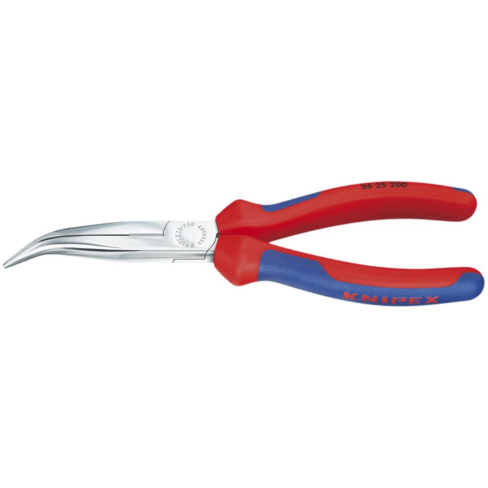 Fladrundtang med skær forkromet 200 mm. Vridningstolerante, elastiske præcisionsspidser. Fladtrunde, lange, spidse kæber. Med skær (hårdhed ca. 61 HRC) til bløde, mellemhårde og hårde trådtyper. Vanadium- elektrostål- smedet, oliehærdet.