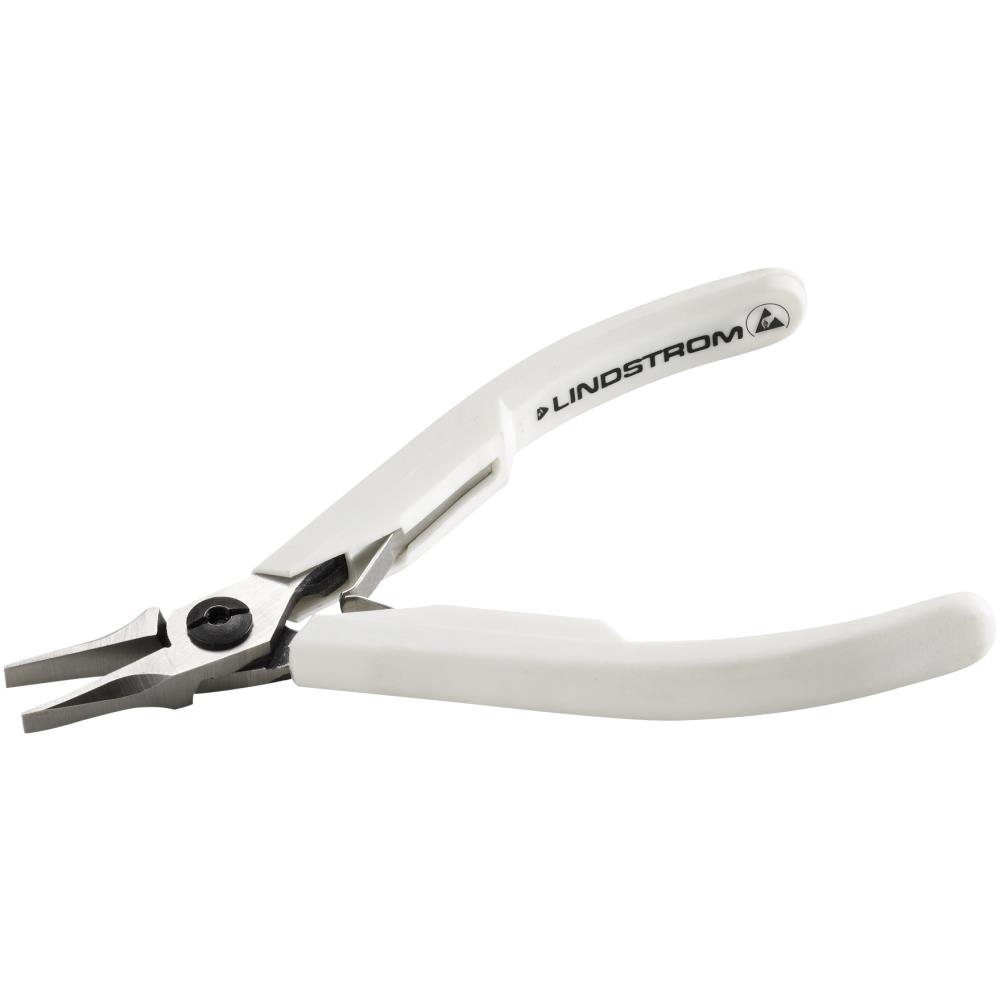 Fladtang med afrundede kæber, 20 mm glatte gribeflader, returfjeder og justerbar centerbolt. Fremstillet af højtlegeret stål – sejhærdet til en hårdhed på 42-46 HRC – poleret og med ESD-sikker håndtag i syntetisk materiale.