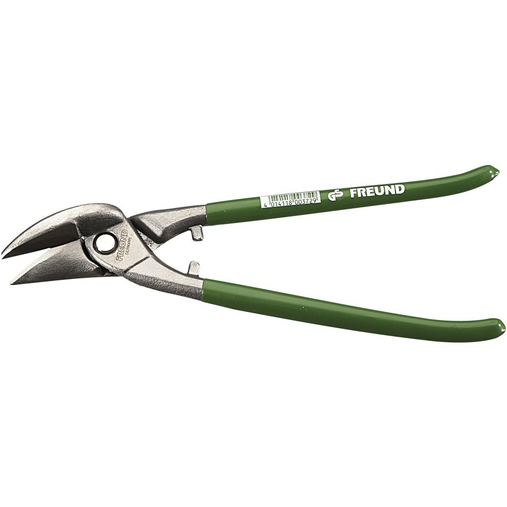 Universalsaks til lige og gennemgående klip samt klipning af huller og kurver. Saksen skærer et rent og præcist snit i pladen uden at bøje den. Det isolerede bløde PVC-greb er skridsikkert. Fås til højre- eller venstreklip.