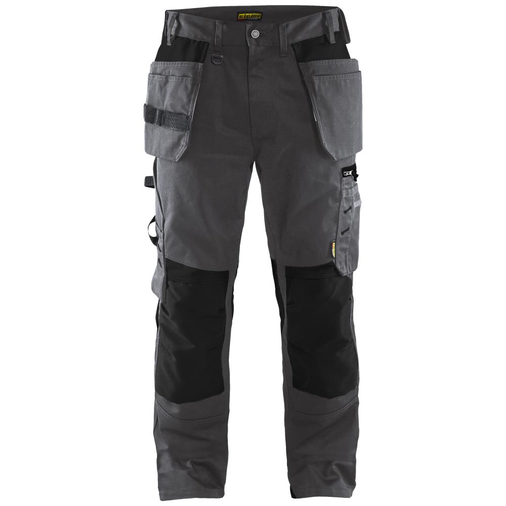 Funktionelle og komfortable håndværker bukser med sømlommer og let tilgængelige lommer, herunder en telefonlomme i stretch materiale, der passer til de fleste telefoner. Knælommer i Cordura stretch stof for optimal pasform og slidstyrke. To baglommer med læg, hammerholder samt en forstærket tommestoklomme, blyantlomme og knivholder. Dertil giver de formsyede knæ en fremragende pasform. Buksen har ligeledes plastlynlås, to bæltestropper på siderne med en knap til hammerholder, en bæltestrop med D-ring på forsiden. Bred bæltestrop bagerst, metalknapper, 3-nålssøm på indvendige ben og aftagelig ID-kortlomme. Fås i flere størrelser og farver.