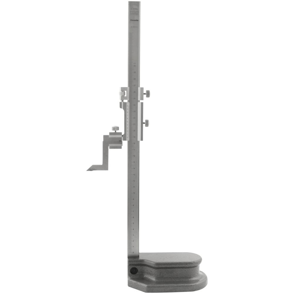 Finindstillelig højdemåler med hårdmetal-ridsearm. Matforkromet målestav og nonius. Kan bruges sammen med vippeindikator. 0,02 mm aflæsning. Fås i flere varianter.