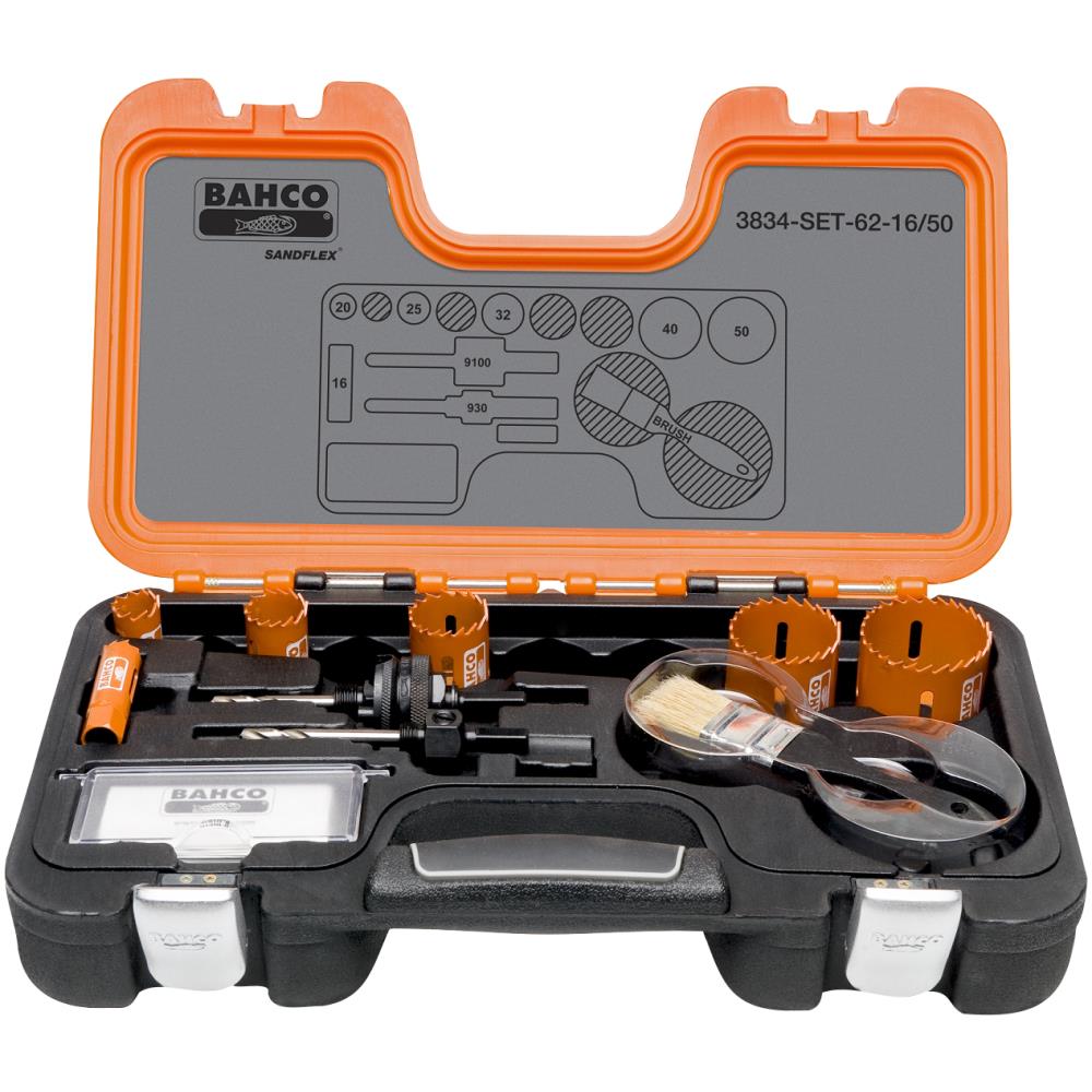 Sandflex bimetal hulsavsæt med de mest anvendte størrelser til arbejde indenfor elinstallation, f.eks. el-skabe mv. Også velegnet til PG-gennemføringer, iht. EU-standard.