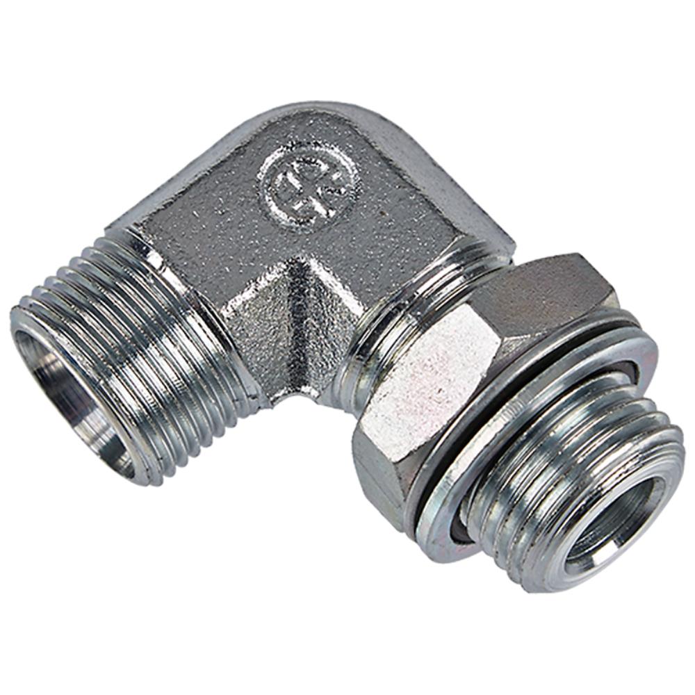 Kompakt vinkel indskruning med kontramøtrik. Udvendig metrisk gevind × udvendig tomme BSP. Uden skærering og omløber. Let serie. Fås i flere dimensioner.