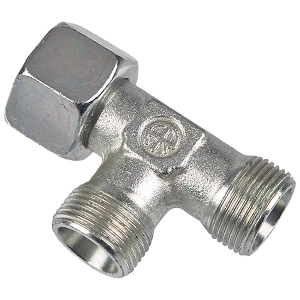 Stilbar L-forskruning. Udvendig/indvendig med O-ring/udvendig metrisk gevind. Uden omløber og skærering. Svær serie. TN 420, DIN 2353. Fås i flere dimensioner.