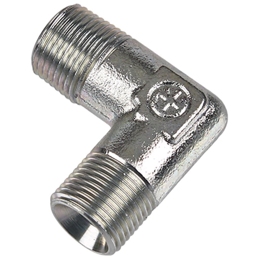 Hydraulisk vinkelnippel 90° BMMT9. BSP 60° konus × BSPT. Tommer. Fås i flere dimensioner.