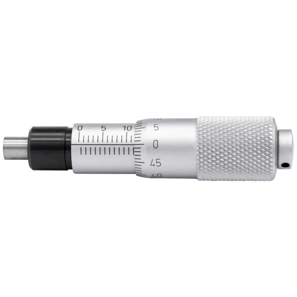 Indbygnings-mikrometer med måleområde fra 0-15 mm med hærdet spindel. Anvendes bl.a. til indbygning i maskiner, apparater, elementer, måleelementer osv. som justerbart målebordsanslag. Aflæsning 0,01 mm. Leveres i plastbeholder. Fås med hhv. planparallel eller konveks måleflade.
