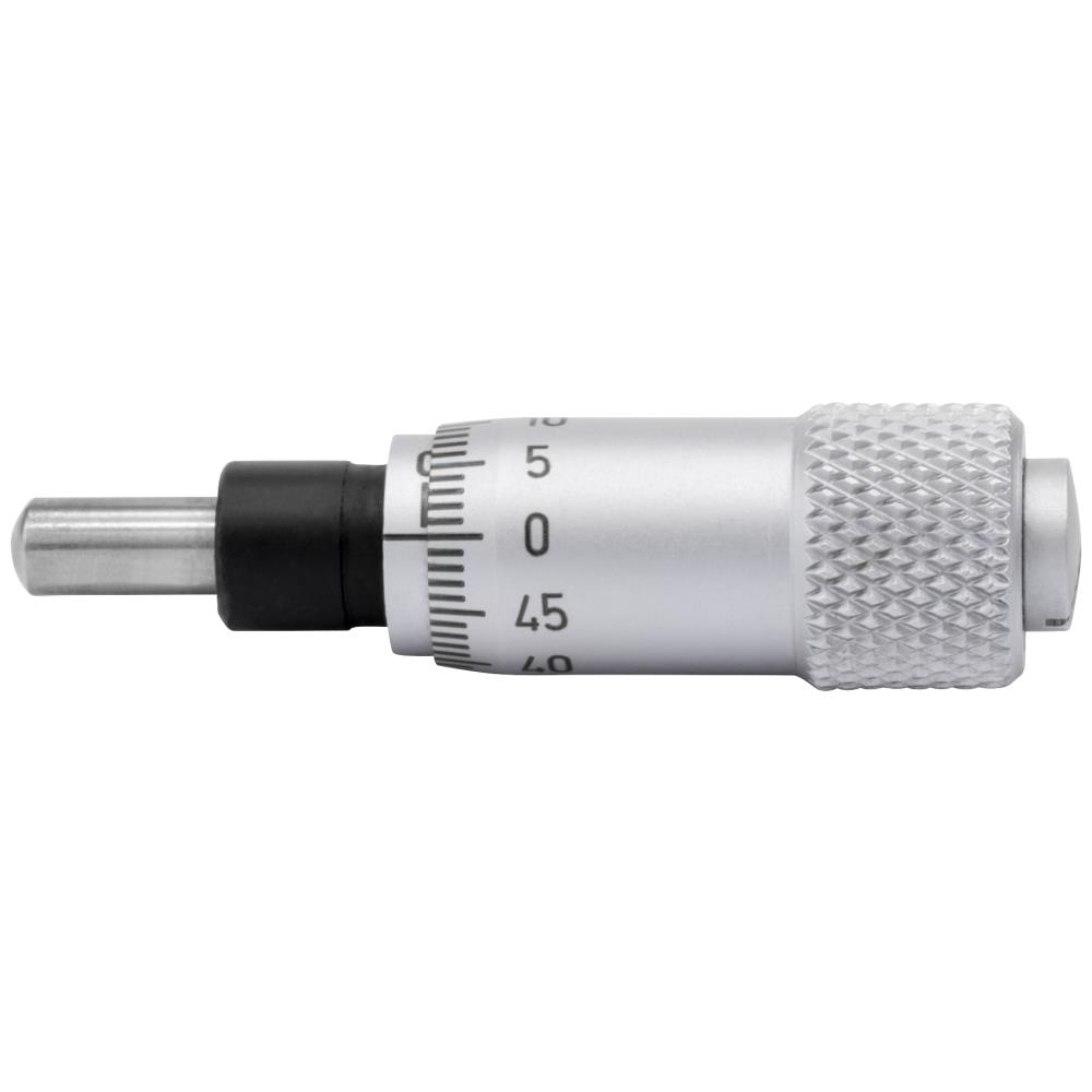 Indbygnings-mikrometer med måleområde fra 0-6,5 mm med hærdet spindel. Anvendes bl.a. til indbygning i maskiner, apparater, elementer, måleelementer osv. som justerbart målebordsanslag. Aflæsning 0,01 mm. Leveres i plastbeholder. Fås med hhv. planparallel eller konveks måleflade.