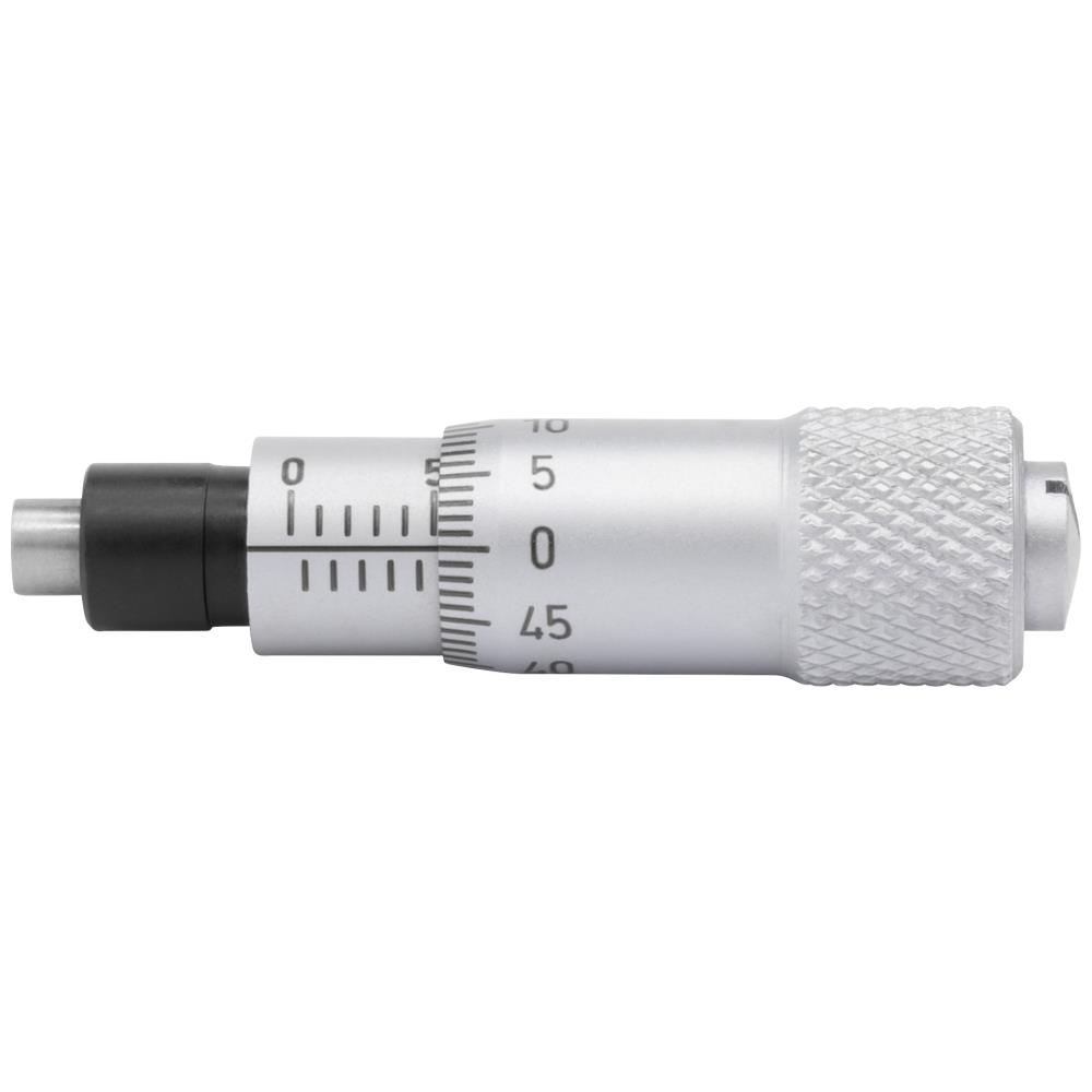 Indbygnings-mikrometer med måleområde fra 0-6,5 mm med hærdet spindel. Anvendes bl.a. til indbygning i maskiner, apparater, elementer, måleelementer osv. som justerbart målebordsanslag. Aflæsning 0,01 mm. Leveres i plastbeholder. Fås med hhv. planparallel eller konveks måleflade.