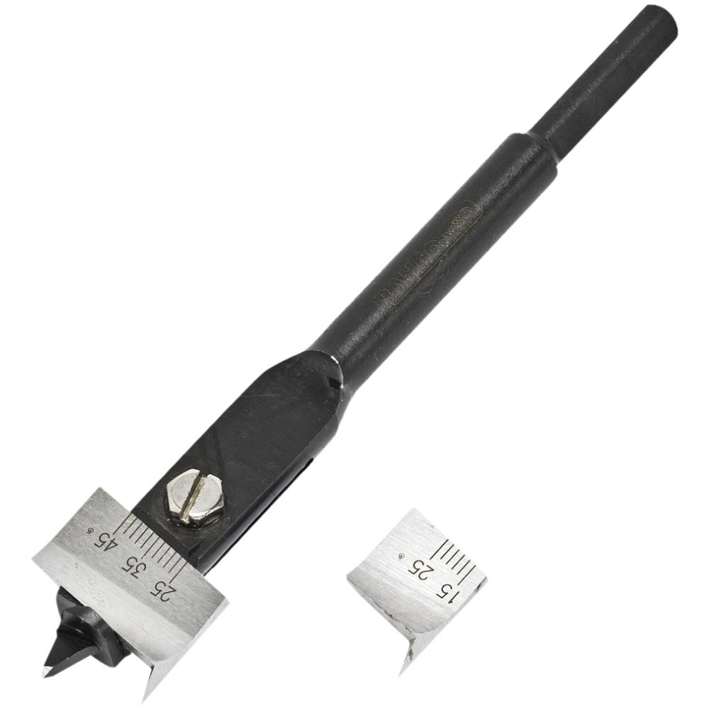 Indstilleligt bor. Indstilles ved brug af skruetrækker eller skiftenøgle. Helsmedet brudsikkert stål. Indstilleligt skær i hærdet og udglødet stål. Forzinket fastspændingsskrue med 6kt-hoved til fast nøgle, og kærv til skruetrækker. Med rund hals.