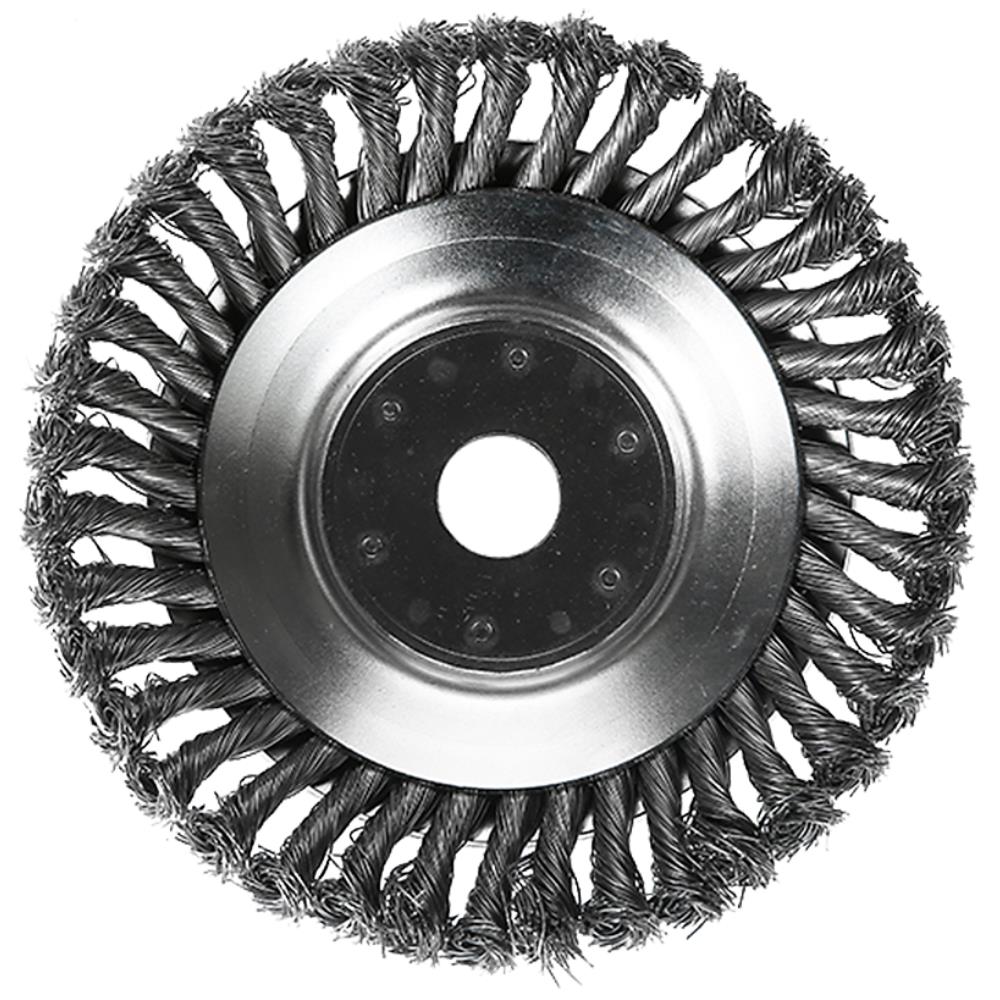 Stålbørste til buskrydder eller græstrimmer fjernelse af ukrudt og belægninger på og imellem fliser, samt belægninger på andre overflader så som rust. Hulstørrelse ø25,3 mm. Fås i hhv. 150 og 200 mm.