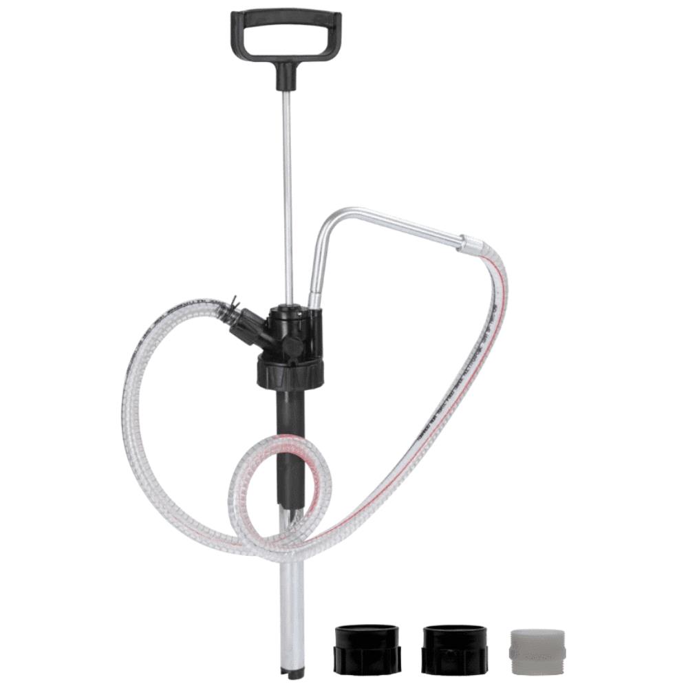 Heavy-duty transferpumpe inkl. 3 adaptere. Velegnet til motorolier, gearolier, diesel og let brændselsolie, frostvæske eller glycerin. Pumpen kan således bruges direkte på 20/25 liters dunke med DIN61 eller DIN71 udv. gevind. Længde 335-450 mm. Pumpekapacitet op til 1 liter / 13 slag. Vitonpakning. 120 cm udløbsslange. Sugerør maks. ø25,4 mm (1″). Maks. viskositet SAE 90. Leveres med 2″R (indv.) / DIN61 (indv.), 2″R (indv.) / DIN71 (indv.) & 2″R (udv.) / OH/OS (udv.)