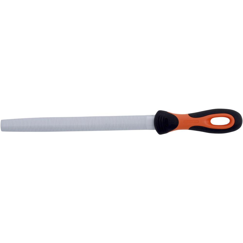 Filehæfte udviklet i henhold til Bahcos ERGO program. Til filing af konkave/flade flader, og store huller. Buet fortanding for fjernelse af store spånmængder i bløde metaller som bly og aluminium, samt blødt træ. Aftagende tykkelse mod enden. Halvrund flade med fræste, buede tænder. Uhuggede kanter og konkav bagside. Filen er behandlet med et beskyttelseslag af maling.