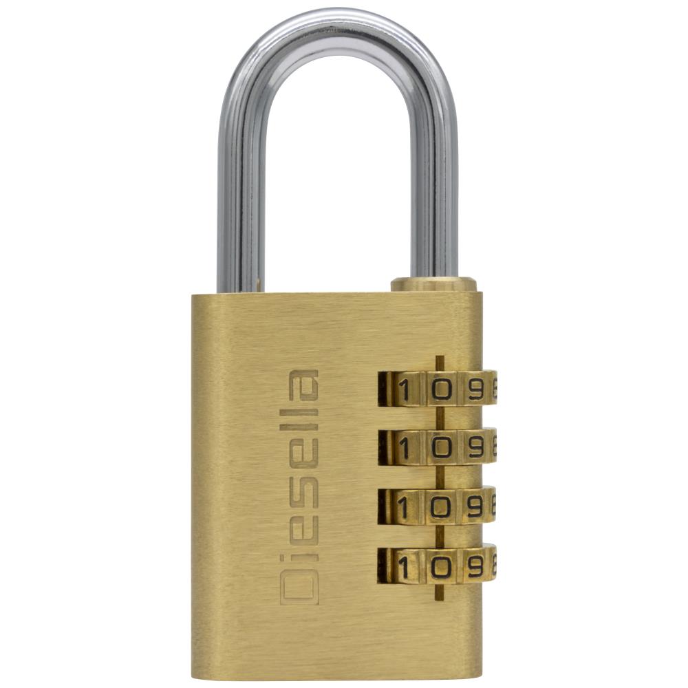 Robust kombinationshængelås velegnet til mange aflåsningsformål. Fremstillet med stålbøjle og messinghus. Låsen fås i flere varianter og er forsynet med op til fire indstillige tal-hjul – der vil give 10.000 kombinationsmuligheder (tre indstillige tal-hjul – vil give 1.000 kombinationsmuligheder).