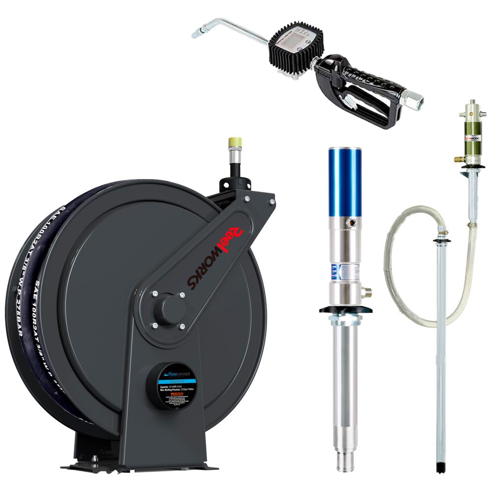 Effektivt og slidstærkt komplet oliesæt til professionelle miljøer, hvor driftssikkerhed, fleksibilitet og brugervenlighed er i fokus. Sættet består af: Robust slangeopruller med langsom indrulning og fleksibel montering (inkl. tilslutningsslange), digital oliepistol (35 ltr.) med LCD-display og slagfast beskyttelse, dobbeltvirkende pumpe med vægmontering (60-208 ltr.), vægadapter til pumpe samt regulator.