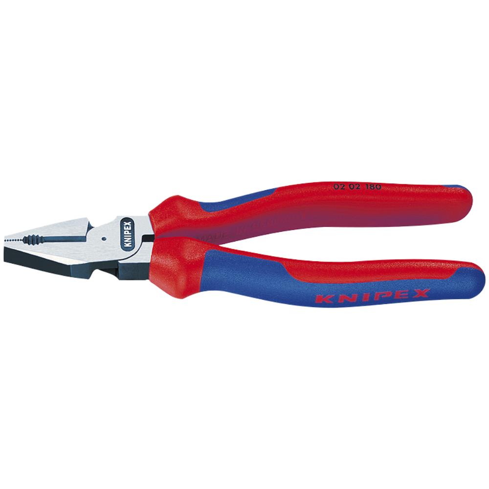 Kraft-kombinationstang sort atramenteret med flerkomponent-håndtag 180 mm. 35% kraftbesparelse i forhold til almindelige kombitænger. Nemmere arbejde pga. optimeret udveksling. Med skær (hårdhed ca. 63 HRC) til bløde og hårde trådtyper samt pianotråd. Lange skær til tykkere kabler. Med gribezoner til fladt og rundt materiale til mangfoldige opgaver. Special-værktøjsstål af særlig kvalitet, smedet, oliehærdet.