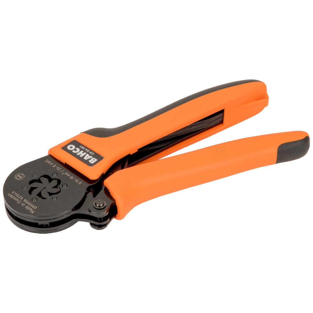 Krympetang med selvjusterende kæber til terminalrør. Kompakt design for nem adgang til ledninger hvor pladsen er trang. Ergonomiske håndtag, lav vægt, relativt lav grebsstyrke og optimal grebsåbning for behagelig krympning. Godt afbalanceret, så værktøjet ikke glider ud af hånden. Krympemekanisme med fuld cyklus for at sikre en ensartet og pålidelig krympning. Udløsermekanisme med låsemekanisme, der fjerner ujævnheder og forhindringer. Skridsikker område holder værktøjet på plads, når det bruges på en arbejdsflade. Fås med hhv. sekskant- eller firkant profil.