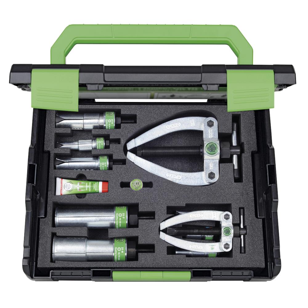 Lejeudtrækkersæt for indvendig ø12-70 mm udtrækning inkl. 2 stk. hjælpeudtrækker. Leveres i kuffert.