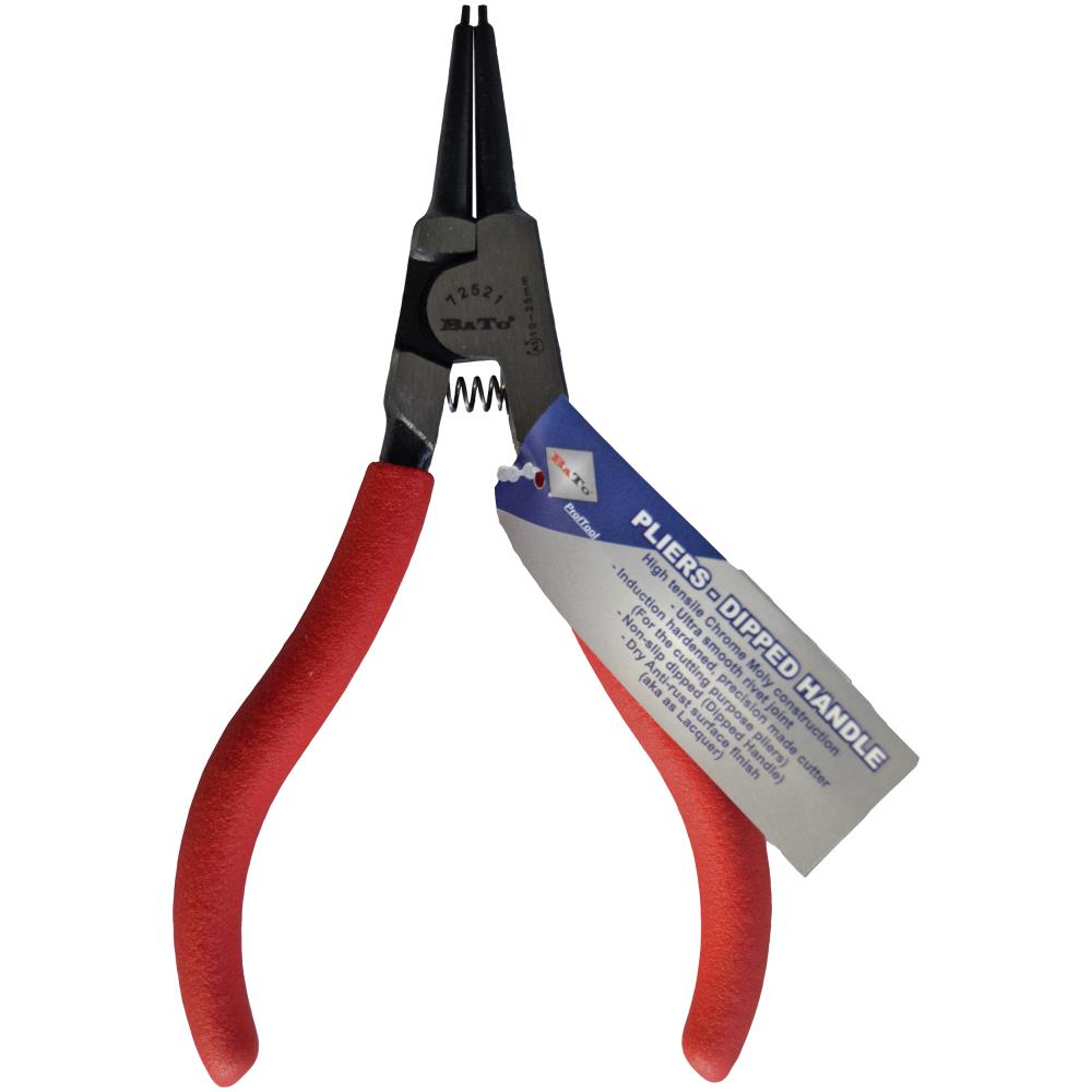 Låseringstang med lige spids til udvendige låseringe og dyppet greb for god komfort. Fås i forskellige varianter.