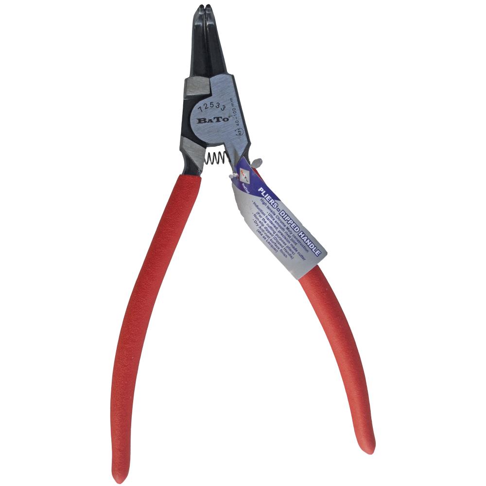 Låseringstang med 90° buet spids til udvendige låseringe og dyppet greb for god komfort. Fås i forskellige varianter.