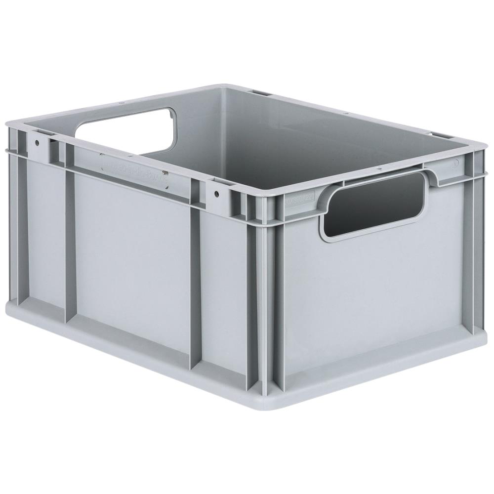 Lagerkasse grå plast 400×300×220 mm, åbne greb