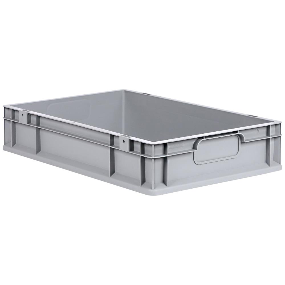 Lagerkasse grå plast 600×400×120 mm, lukkede greb