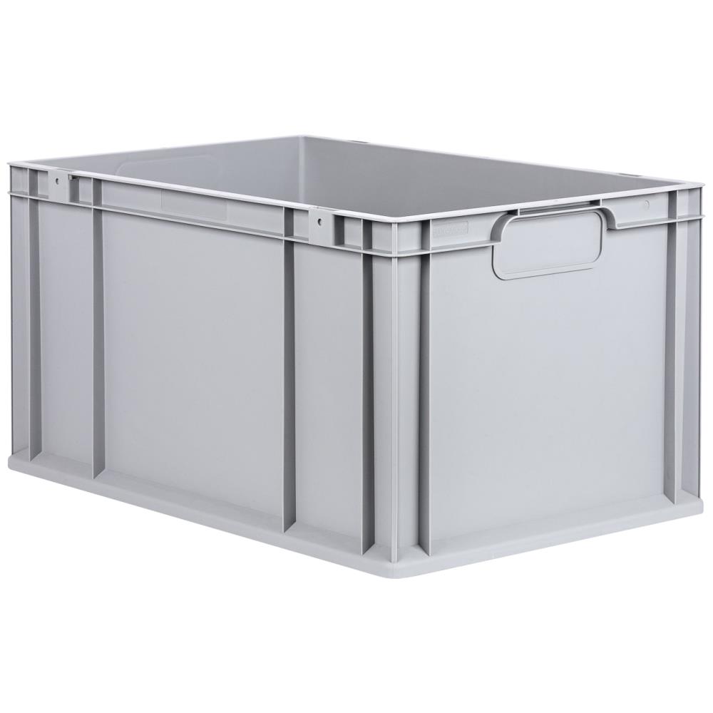 Lagerkasse grå plast 600×400×320 mm, lukkede greb