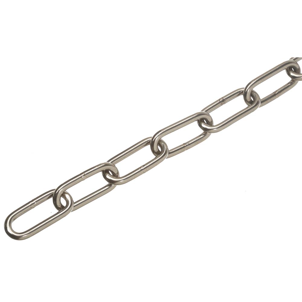 Syrefast, AISI 316 langleddet kæde. I henhold til DIN 763. Ej til løft. Fås i flere dimensioner.