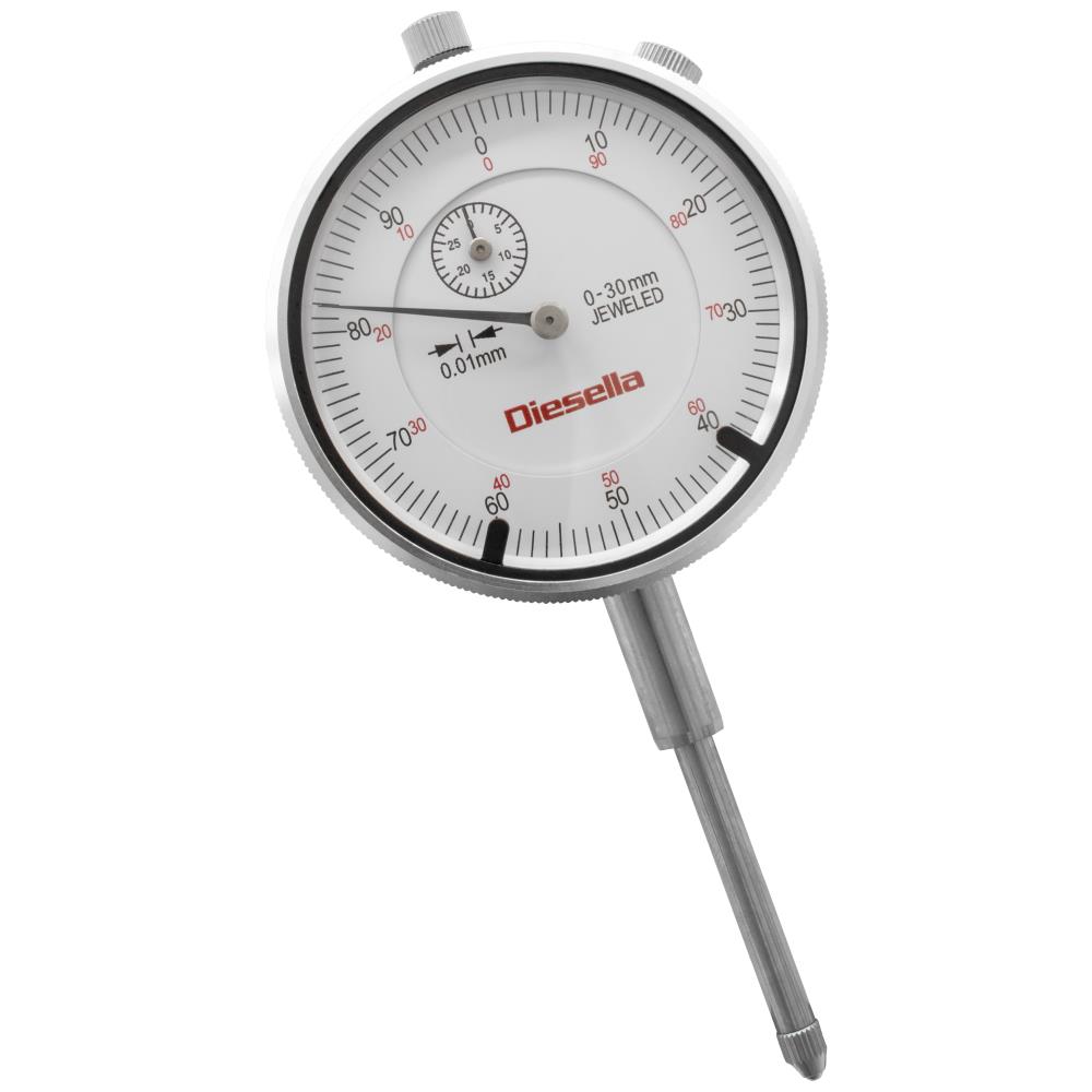 Præcisions-måleur med diameter ø56 mm med metalkabinet og hærdet og slebet ø8 mm h6 opspændingsskaft. Urskiven kan drejes i nulstilling vha. udvendig ring. Inkl. 2 indstillelige tolerancemærker. Produceret efter DIN 878 standard. Leveres inkl. Werkscertifikat. Fås i flere varianter.