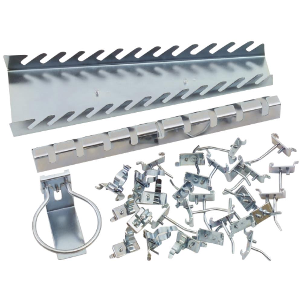 Ophængssortiment til værktøjsborde, materialeskabe, værkstedsvogne og til allround brug. Fås i flere varianter: OS-93 med i alt 31 ophæng og 5 plastkasser (bøjler: 1 × 1000 og 1 × 1001, kroge: 5 × 1015 og 10 × 1016, dobbeltkroge: 2 × 1055, fjederklemmer: 3 × 1083 og 3 × 1084, skruetrækkerholder: 1 × 1113-6-13, skruetrækker/fileholder: 1 × 1119-9, smørekandeholder: 1 × 1135, stjerne-/gaffelnøgle ophæng: 1 × 1120, borholder: 1 × 1114 og 1 × 1115, småtingskasser: 5 × 142T0019, småtingskasseholder: 1 × 142T0021). OS-94 med i alt 31 ophæng (kroge: 10 × 1015 og 10 × 1016, fjederklemmer: 2 × 1083, 3 × 1084 og 3 × 1085, smørekandeholder: 1 × 1135, skruetrækker/fileholder: 1 × 1119-9, stjernegaffelnøgleholder: 1 × 1120). OS-95 med i alt 32 ophæng (kroge: 10 × 1015 og 15 × 1016, fjederklemmer: 2 × 1084 og 3 × 1085, skruetrækkerholder: 1 × 1113-6-13, skruetrækker/fileholder: 1 × 1119-9). OS-96 med i alt 30 ophæng (kroge: 10 × 1015 og 15 × 1016, fjederklemmer: 2 × 1084 og 2 × 1085, skruetrækkerholder: 1 × 1113-6-13).