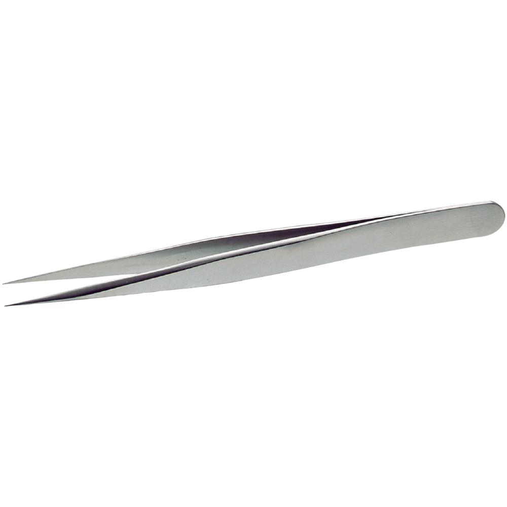 Pincet med meget skarpe spidser. For arbejde hvor der kræves størst mulig præcision. Materiale: Rustfast stål, antimagnetisk, syrefast. Finish: Poleret.