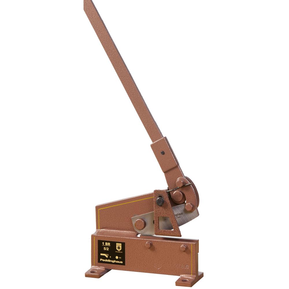Pam pladesaks med trækstang Model 1 BR. Stabil maskinkrop med knive i hærdet og slebet specialstål til plade, fladstål og rundstål. Ergonomisk klippegeometri. Trinløs indstillelig modholder. Trækstang med sikringsfjeder. Leveres i tre størrelser.