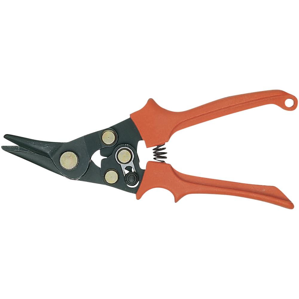 Pladesaks med mere kraft vha. udveksling. Fræste, tilspidsede kæber, induktionshærdet. Skærenes udformning sikrer skarphed og lang levetid. Riflede sider holder om metalpladerne. Klippekapacitet: 1,2 mm (rustfrit stål), 0,8 mm (koldtvalset stål). Mere kraftig i form af udveksling, sikkerhedslås. Selvåbnende fjeder for nem håndtering. Stærke glasfiber- og nylonhåndtag med et sikkert og behageligt greb. Fås til lige-, højre- eller venstreklip.