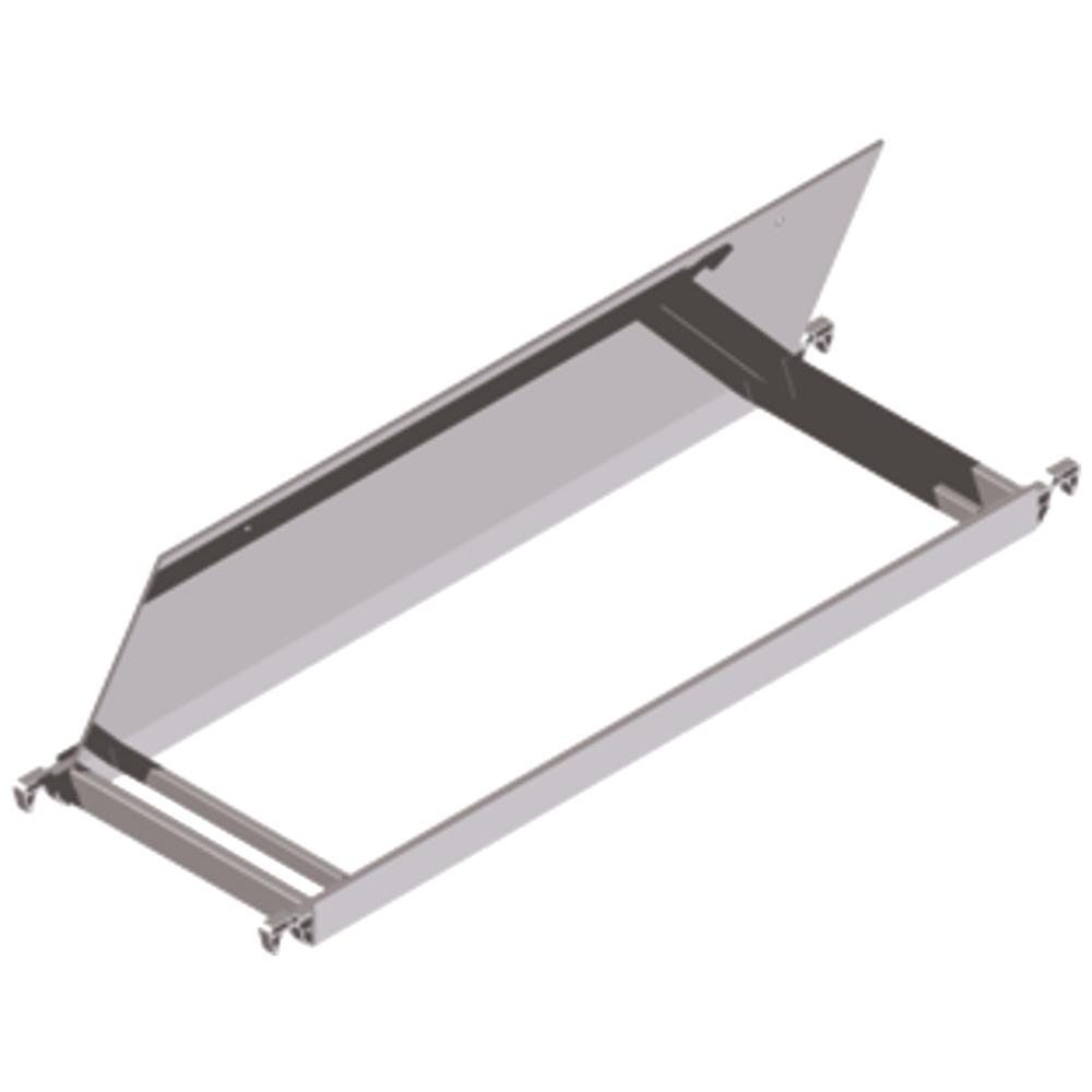 Platform med hel lem, til trappestillads. Til den øverste platform ved stilladser med trapper. Med gennemgående klap, der kan åbnes ved hjælp af to gribehuller. B:600 mm. Fås i flere varianter.