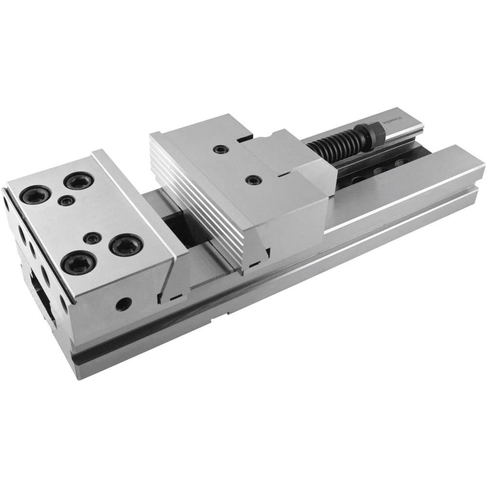 Præcisionsskruestik til fræseopgaver på konventionelle og styrede bearbejdningsmaskiner. Hurtig positionering af bevægelig bakke og kort spindel til fastspænding af emner. Skruestikken har høj gentagelsesnøjagtighed af spændeposition. Ekstra gevindhuller til kundespecifikke løsninger. Fremstillet af højtlegeret kvalitetsstål (20Cr.Mn.Ti.) med overfladehårdhed 58-68 HRC med en hærdedybe på 0,8-1,2 mm. Leveres inkl. spændejern, notsten, arbejdsstop, spænde- og stiftnøgle. Fås i flere varianter.