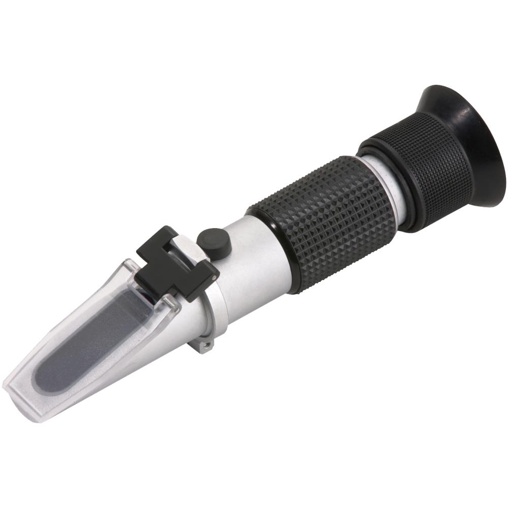 Refraktometer. Fastsætter hurtigt og præcist frysepunkt på propylen- og ethylen glycol-baserede frostvæsker. Kan ligeledes fastsætte batteriets syrekoncentration/ladetilstand. Udstyret med fokuserende okular som viser en skarp og letaflæselig skala. Specifikationsområde: -45° til 0° propylene glycol og -50° til 0° ethylene glycol.